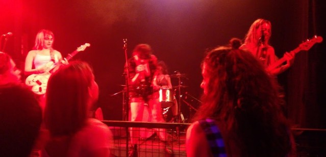 “So hi we’re Peach Club! Your friendly local Riot Grrrls. And one of the main points of Riot Grrrl is taking up space that usually doesn’t belong to you. So we have a question to ask”